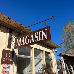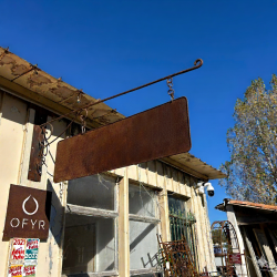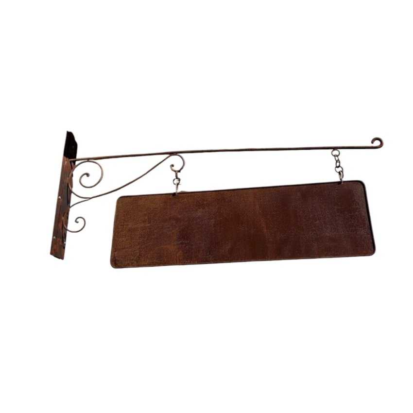Enseigne en fer à fixer sur un mur. L'ensemble comprend une crosse de fixation et une plaque en fer suspendue par des chainettes. Possibilité de faire personnaliser par nos soins.