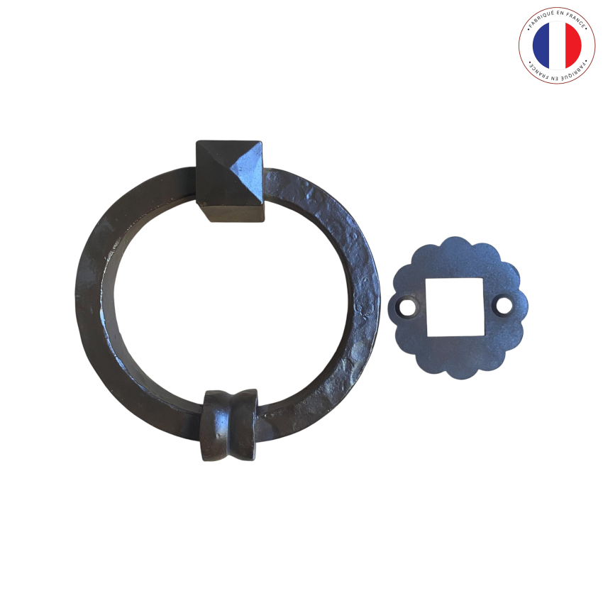 Heurtoir en fer. Idéal pour les portes d'entrée rustiques ou anciennes, il ajoute une touche décorative élégante et intemporelle.