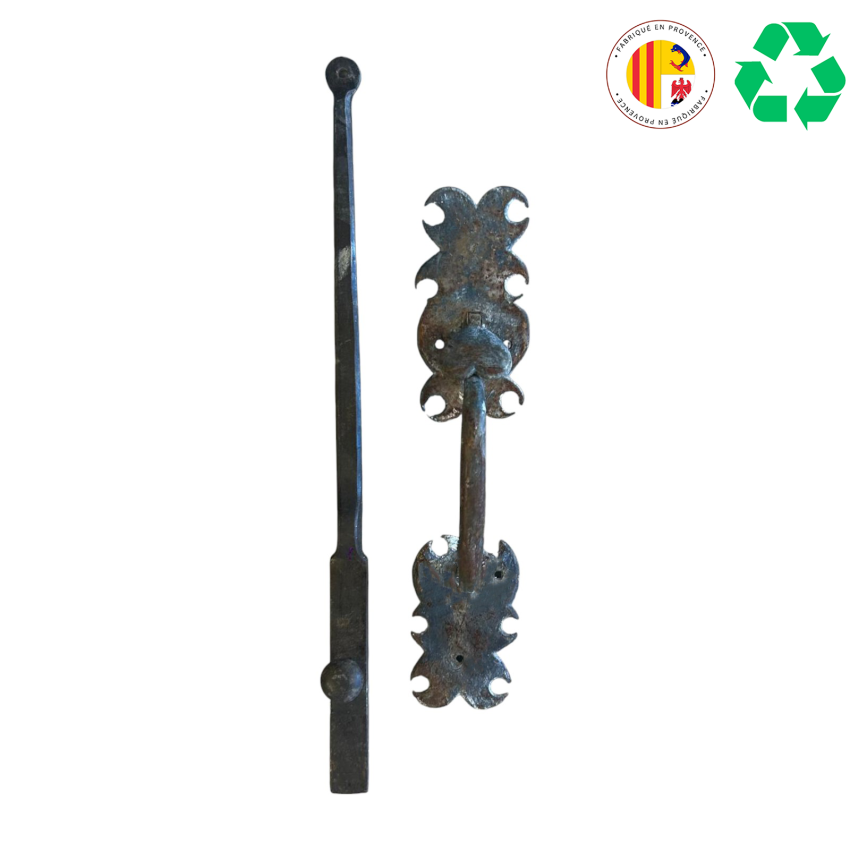 Poignée loquet poucier et clenche, style ancien, idéal pour les portes intérieurs et placards rustiques.