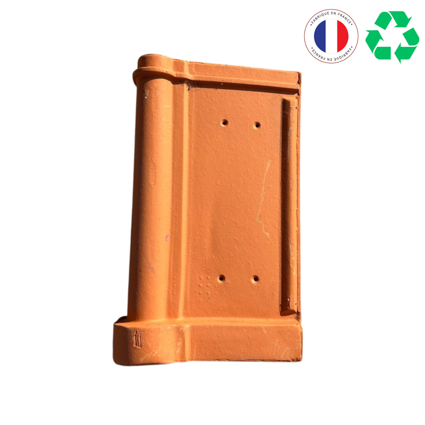 Tuile marseillaise de rive courte en terre cuite, de récupération.